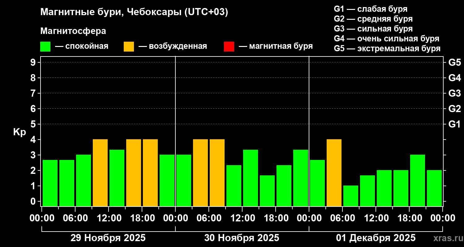 Магнитные бури Чебоксарах — 1 декабря 2025 года