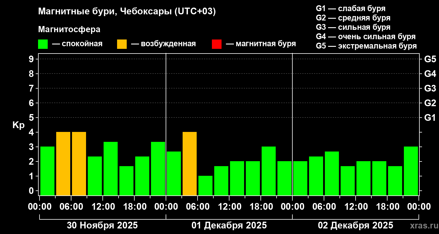 Магнитные бури Чебоксарах — 2 декабря 2025 года