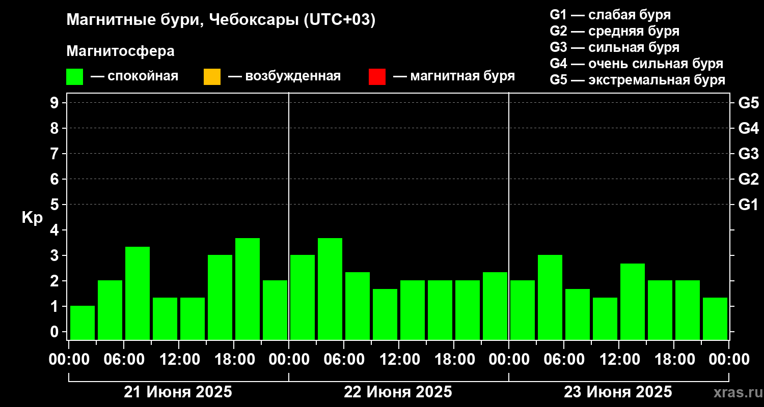Магнитные бури Чебоксарах 23 июня 2025 года