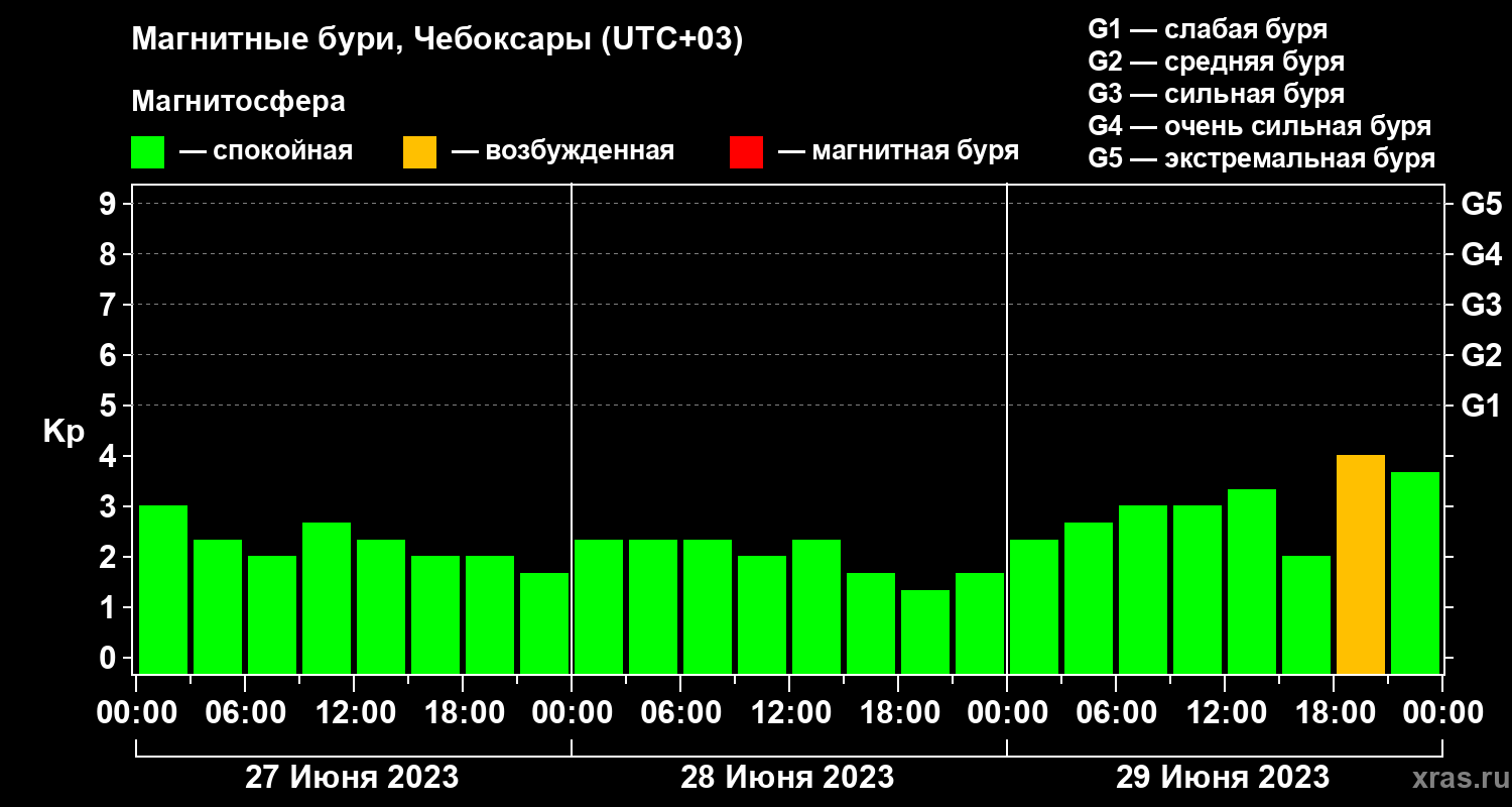 Магнитные бури Чебоксарах 29 июня 2023 года