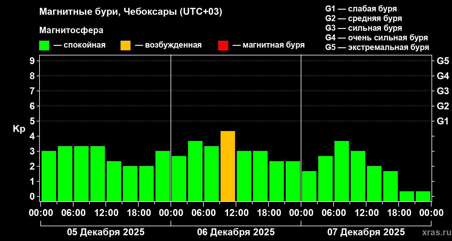 Магнитные бури Чебоксарах — 7 декабря 2025 года