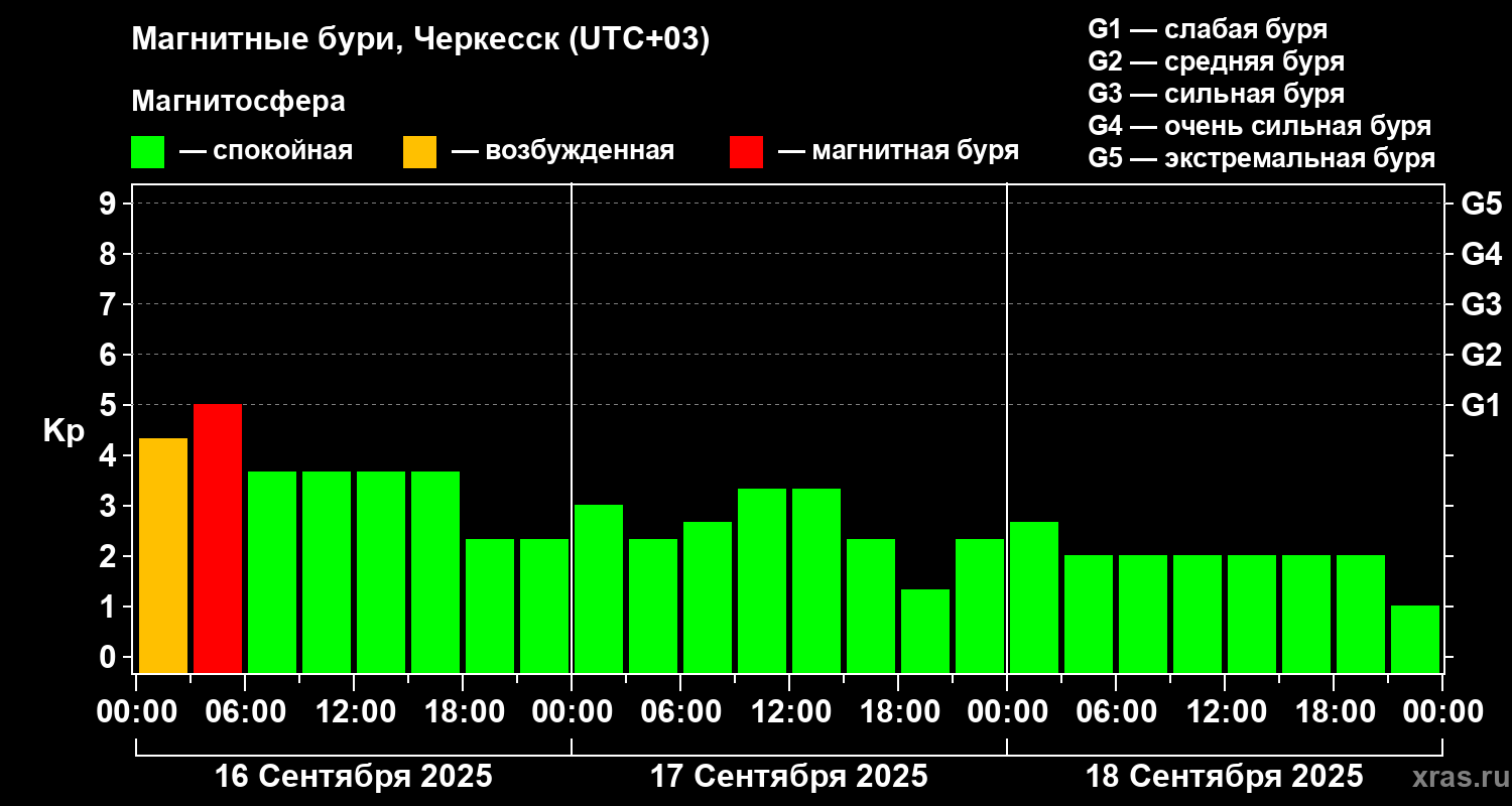 Магнитные бури в Черкесске — 18 сентября 2025 года