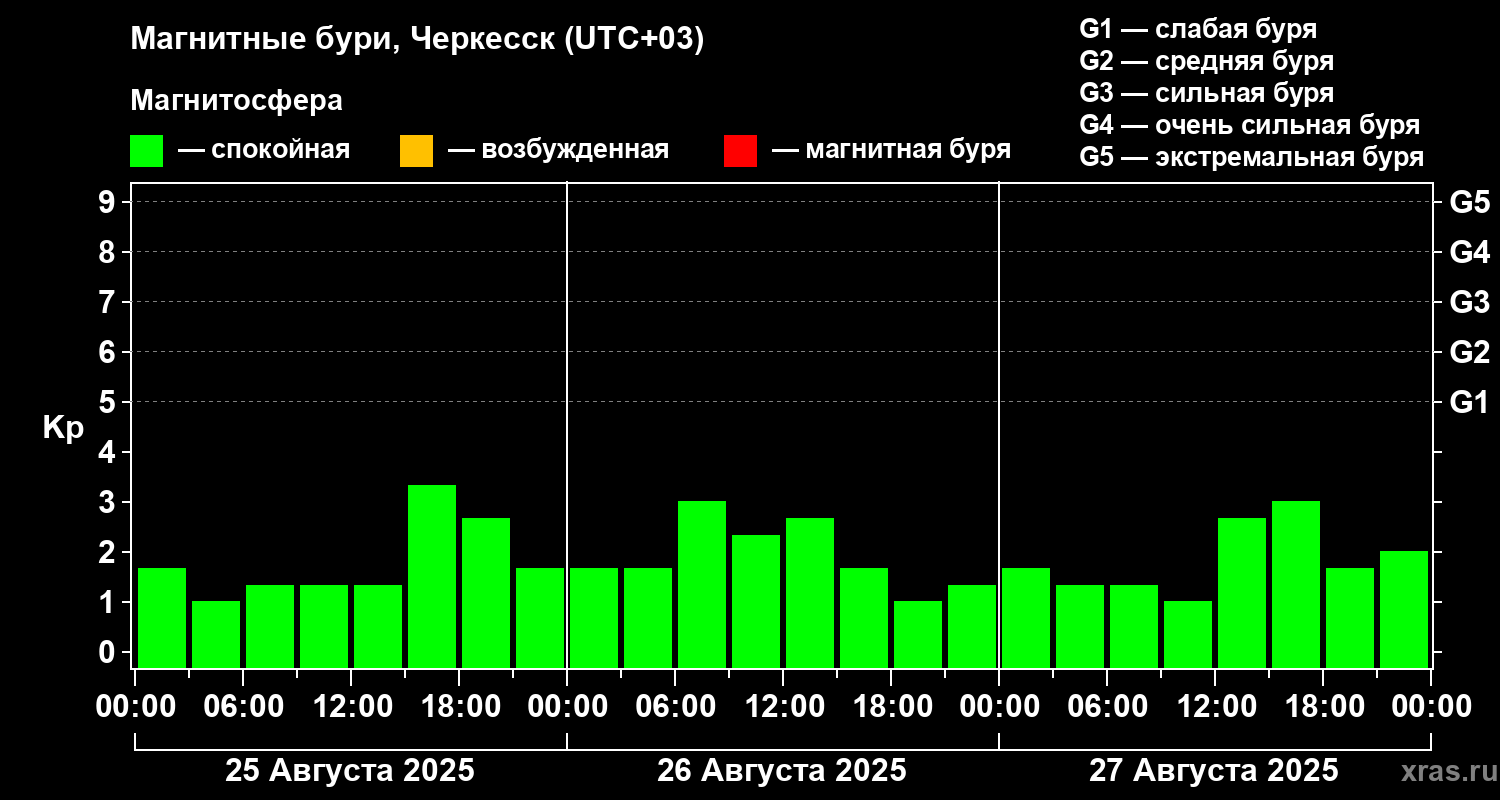 Магнитные бури в Черкесске — 27 августа 2025 года