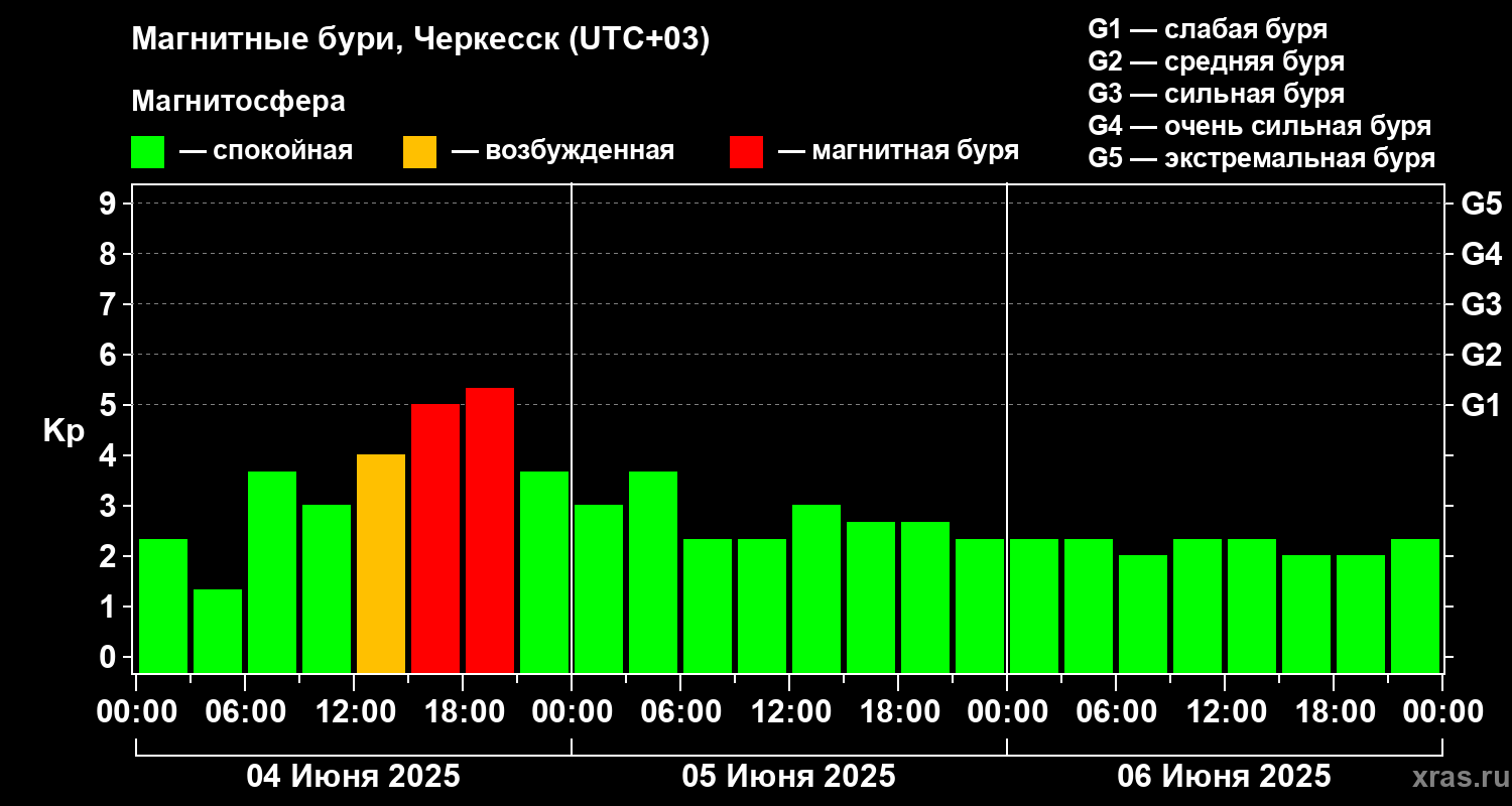 Магнитные бури в Черкесске — 6 июня 2025 года