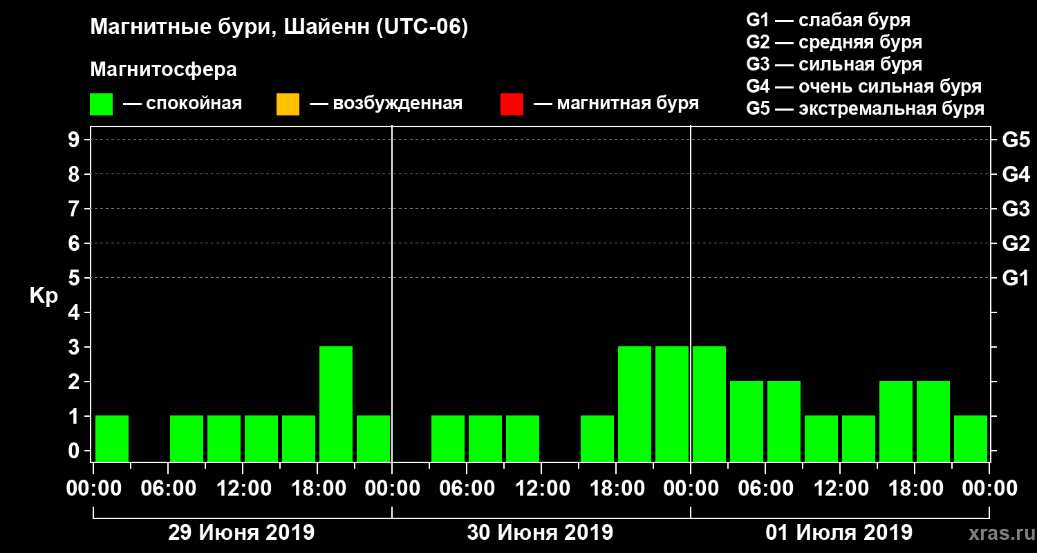 Магнитные бури в Шайенне — 1 июля 2019 года
