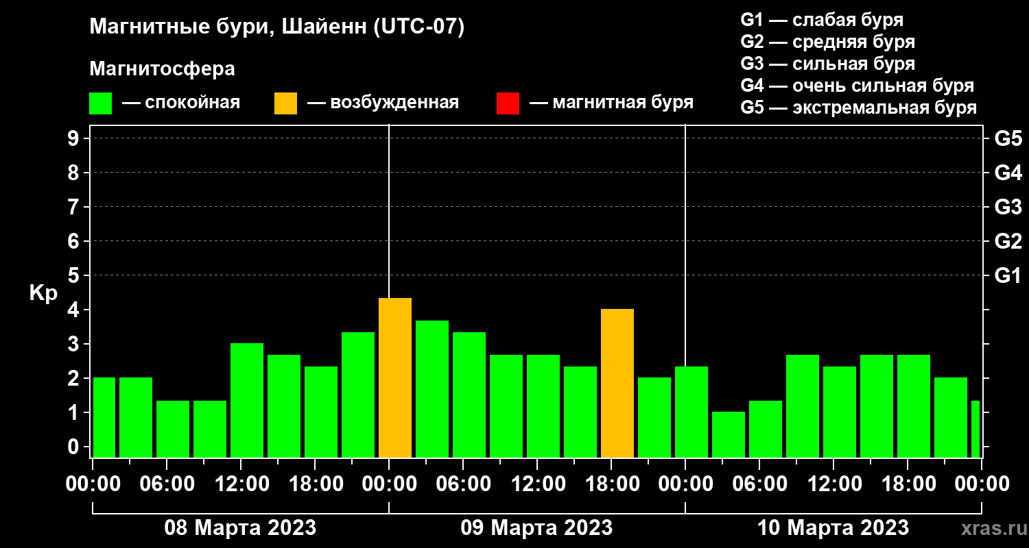 Магнитные бури в Шайенне 10 марта 2023 года