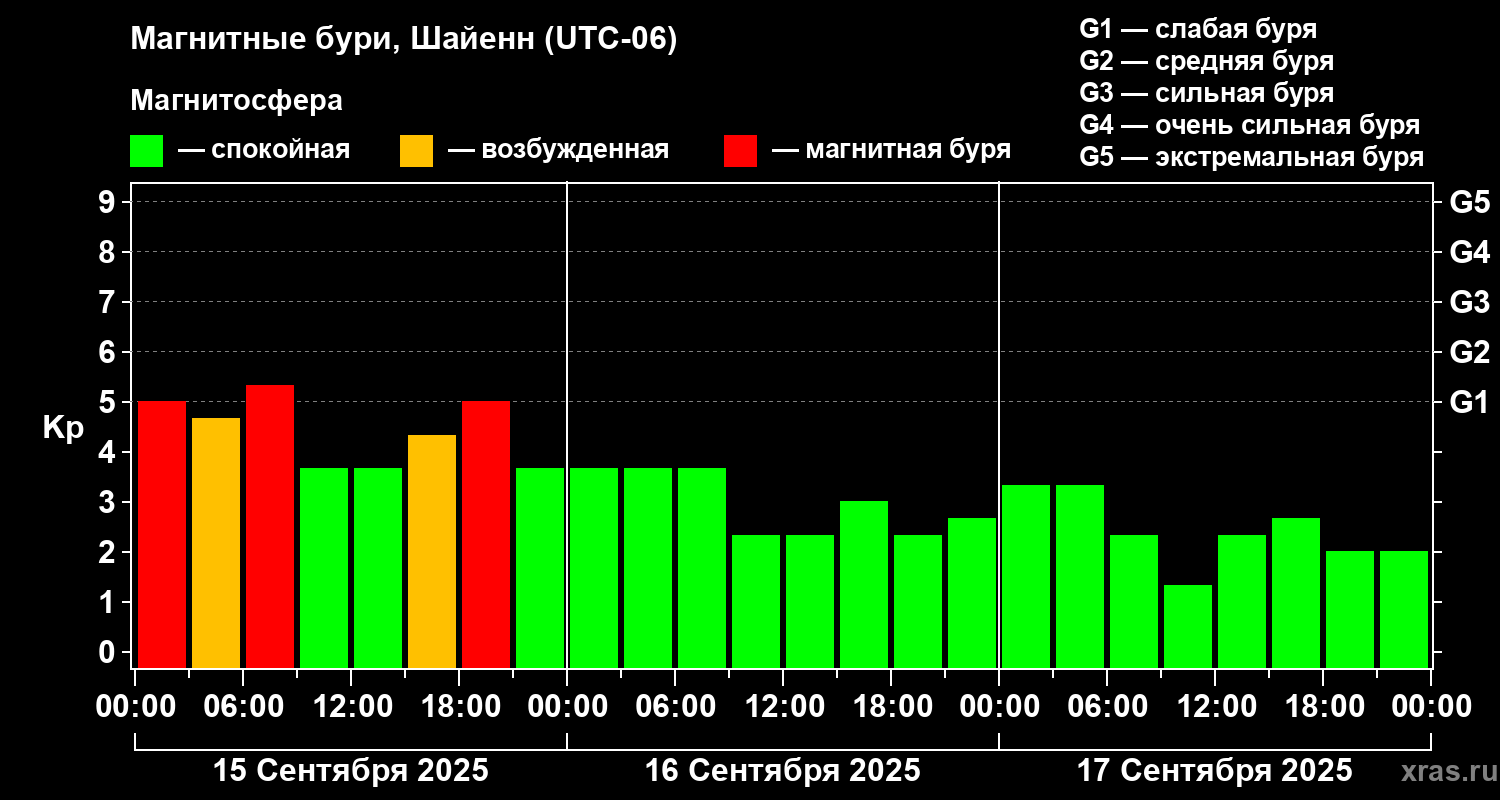 Магнитные бури в Шайенне 17 сентября 2025 года