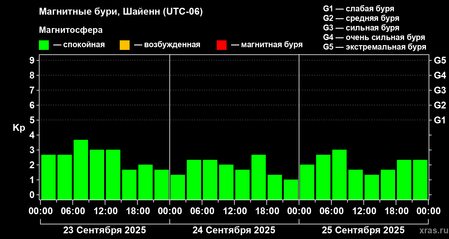 Магнитные бури в Шайенне 25 сентября 2025 года