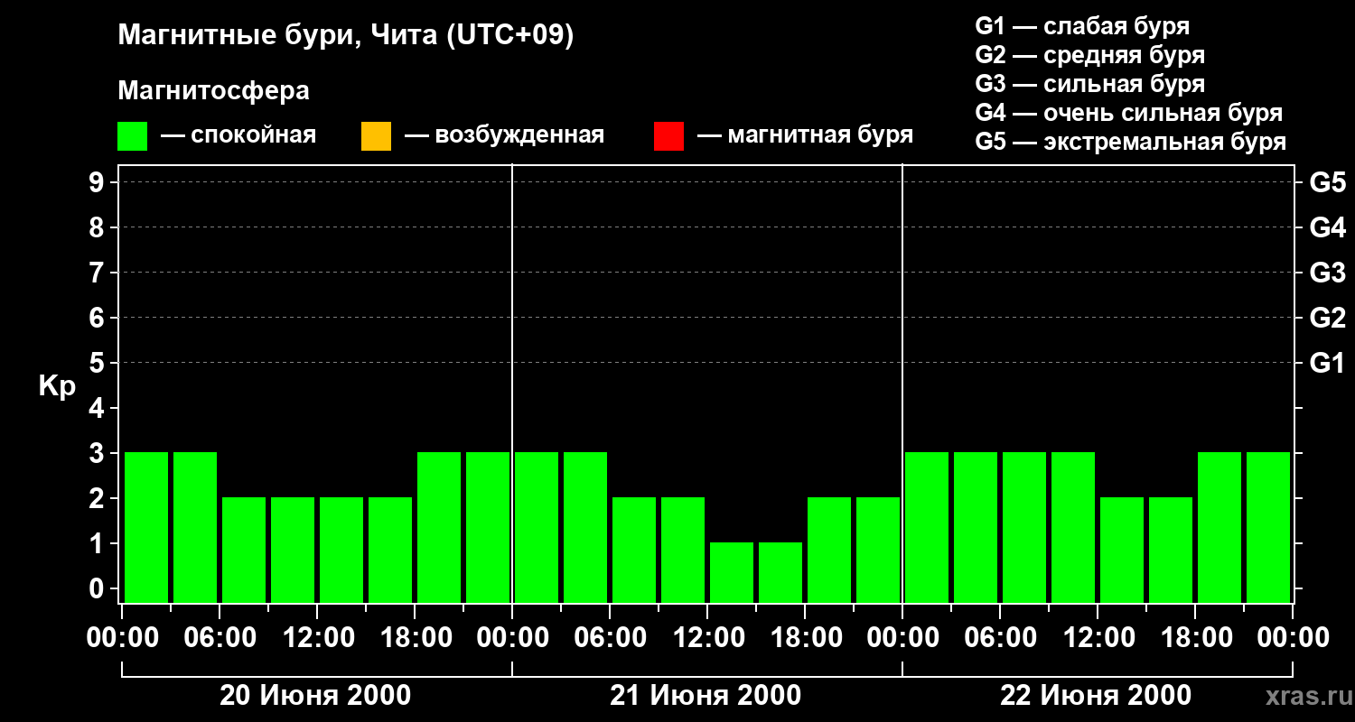 магнитосфера Земли была спокойной (Kp = 3.00)