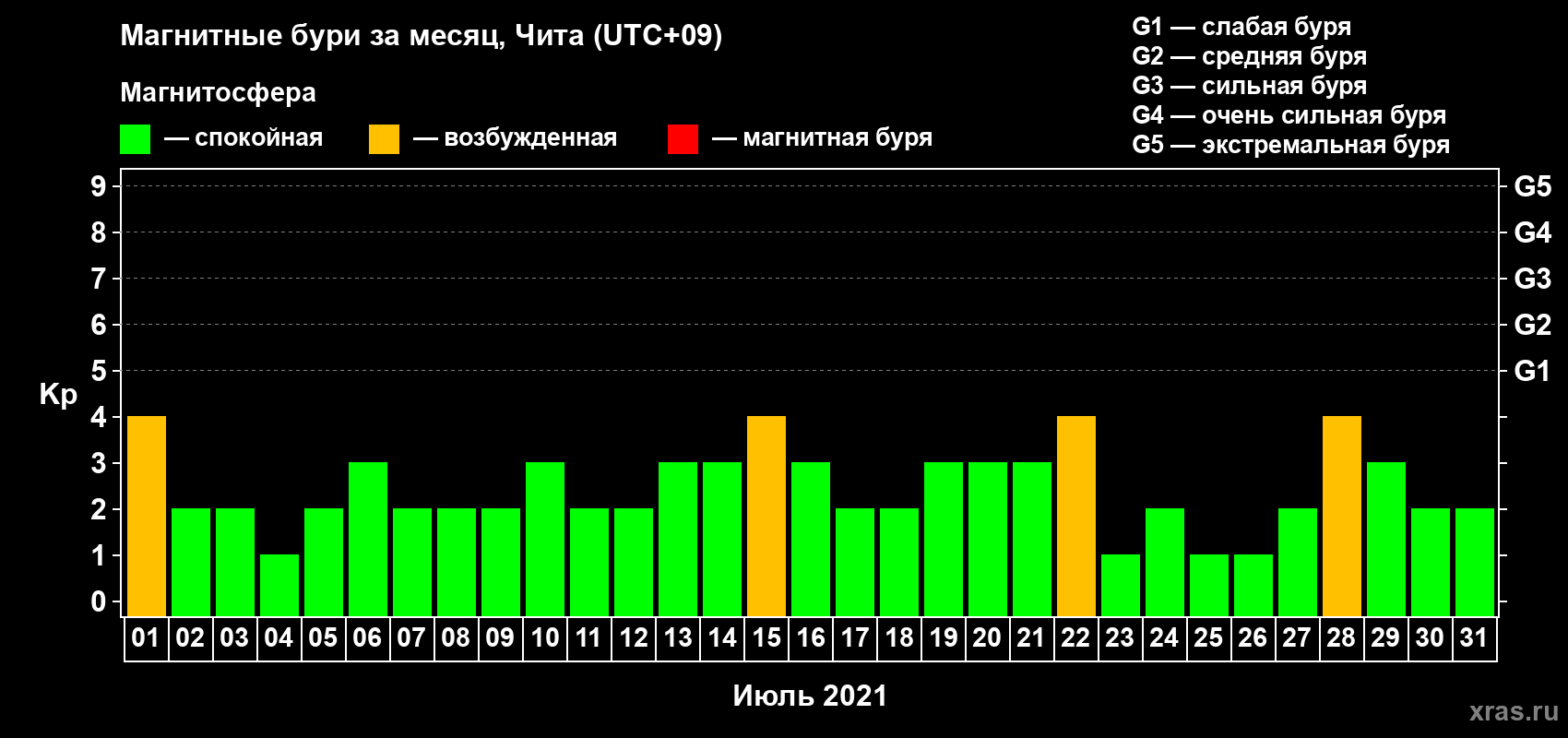 Список магнитных бурь в июле 2021 года