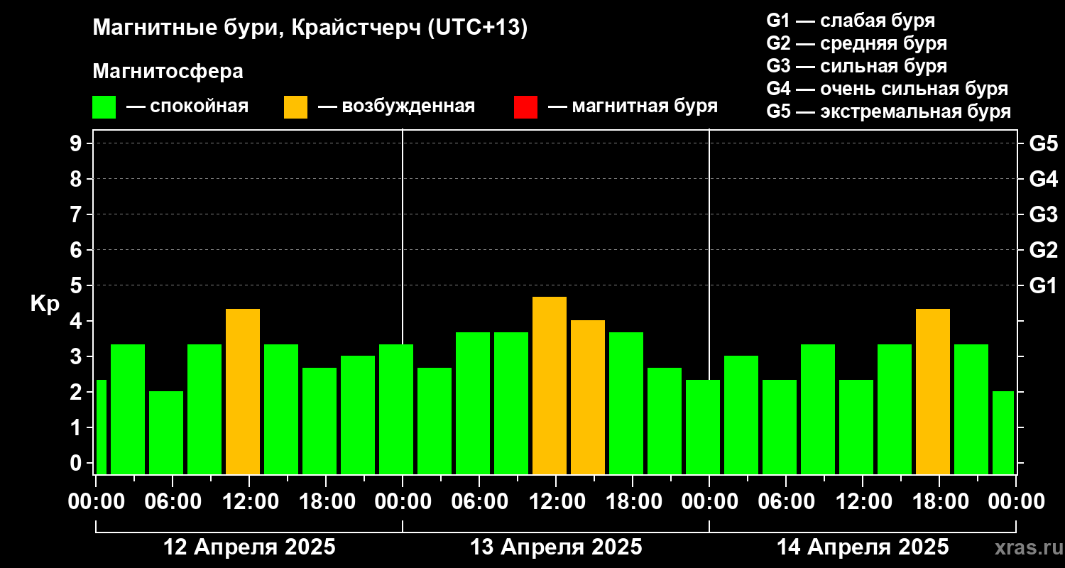 Магнитные бури в Крайстчерче 14 апреля 2025 года