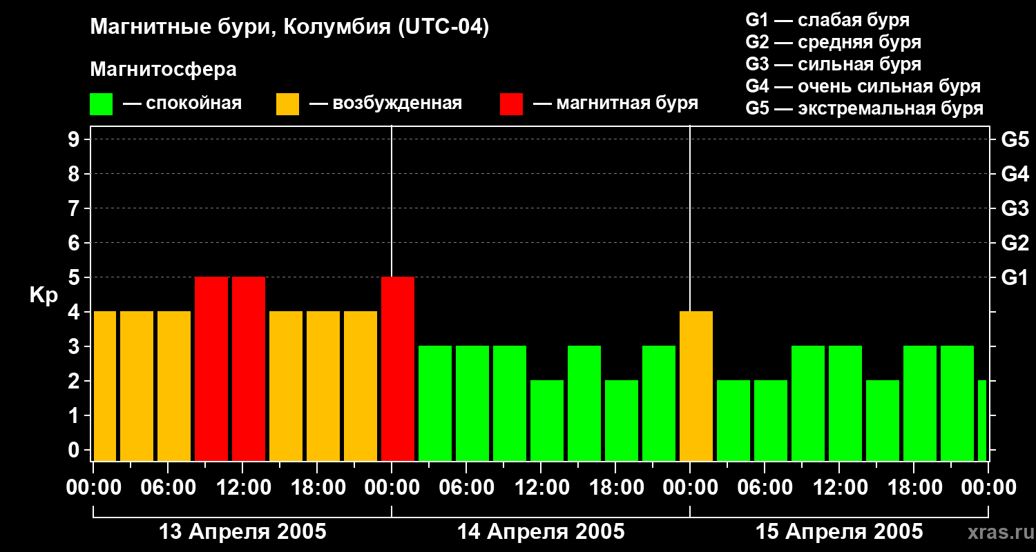Магнитные бури в Колумбии — 15 апреля 2005 года