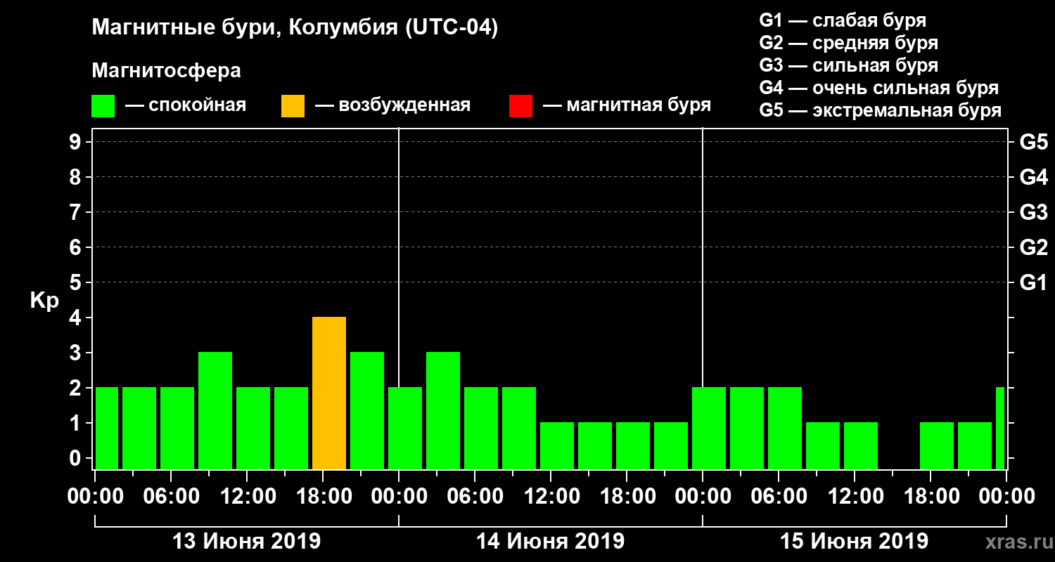 Магнитные бури в Колумбии 15 июня 2019 года