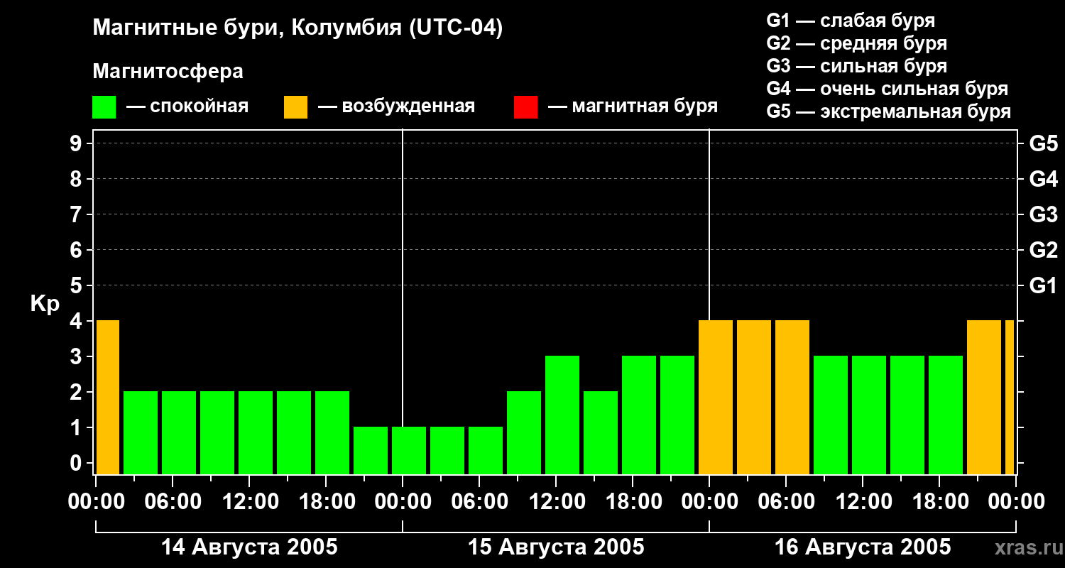 Магнитные бури в Колумбии — 16 августа 2005 года