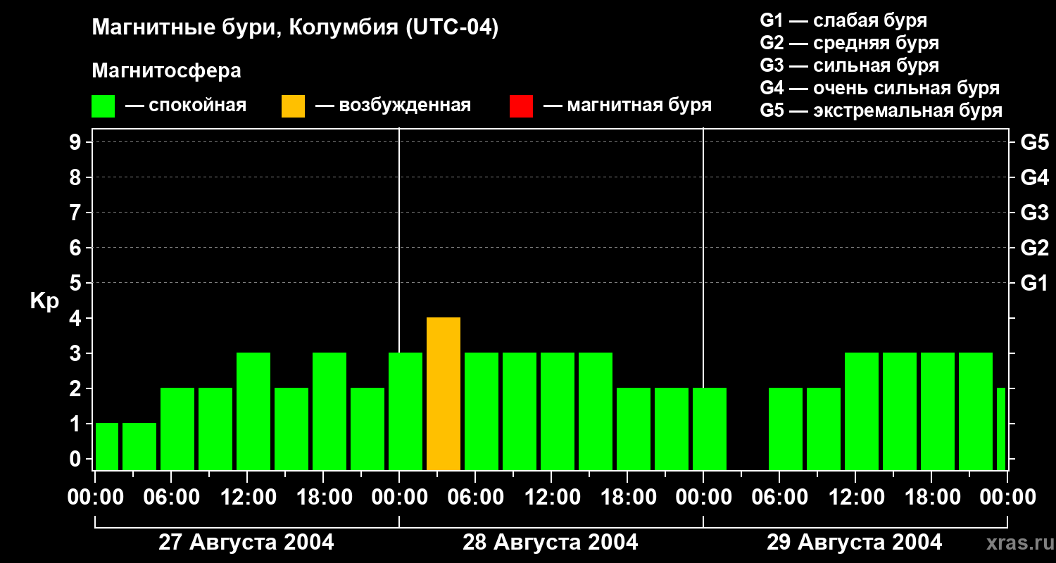 Магнитные бури в Колумбии — 29 августа 2004 года