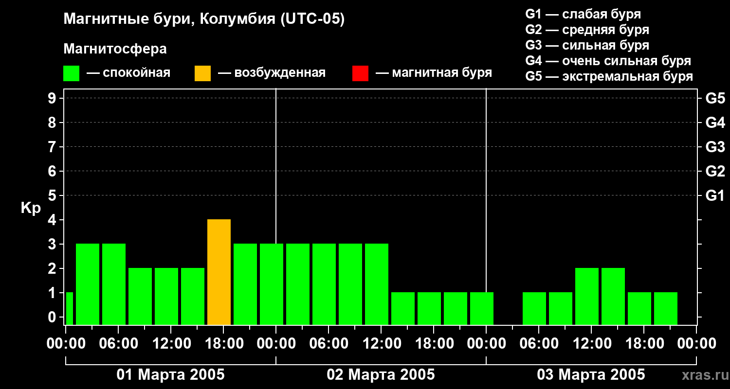 Магнитные бури в Колумбии — 3 марта 2005 года