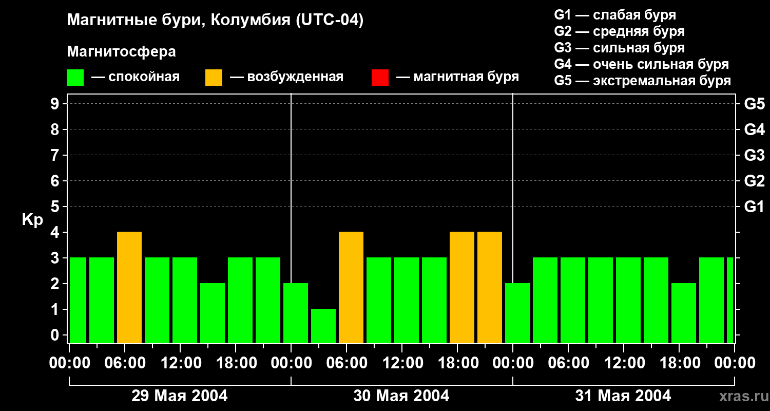 Магнитные бури в Колумбии — 31 мая 2004 года