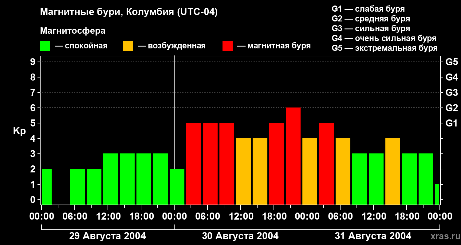 Магнитные бури в Колумбии — 31 августа 2004 года