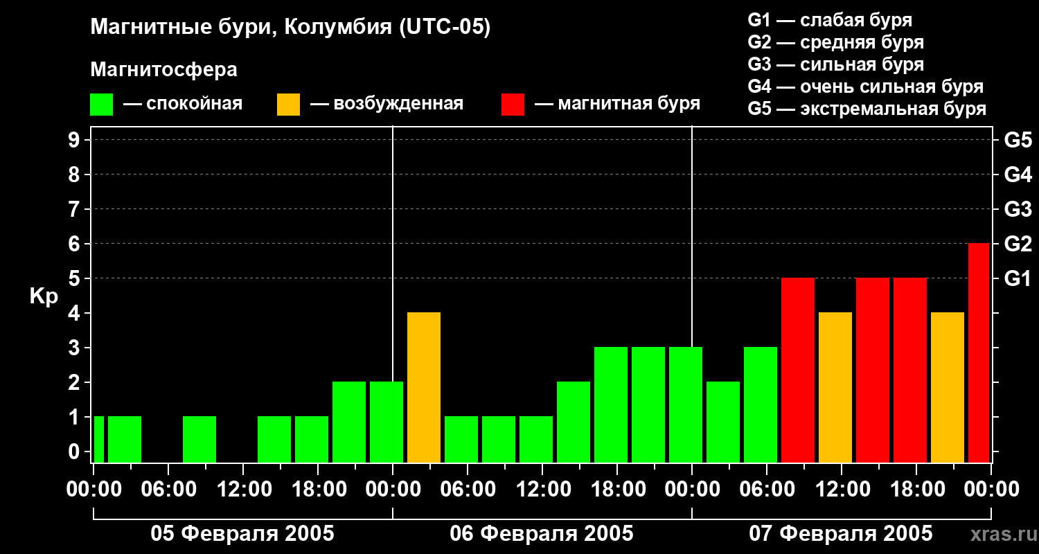Магнитные бури в Колумбии — 7 февраля 2005 года