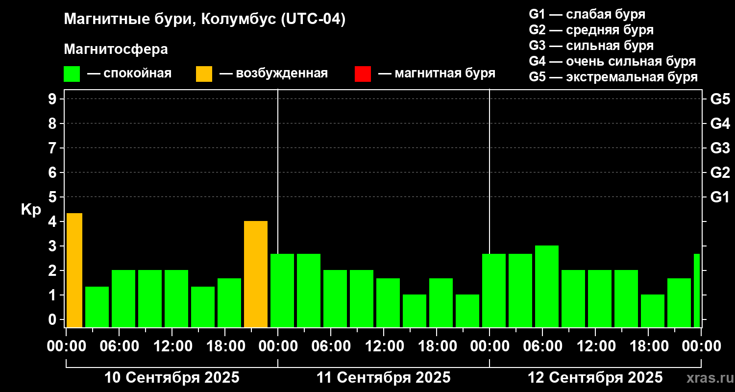 Магнитные бури в Колумбусе — 12 сентября 2025 года
