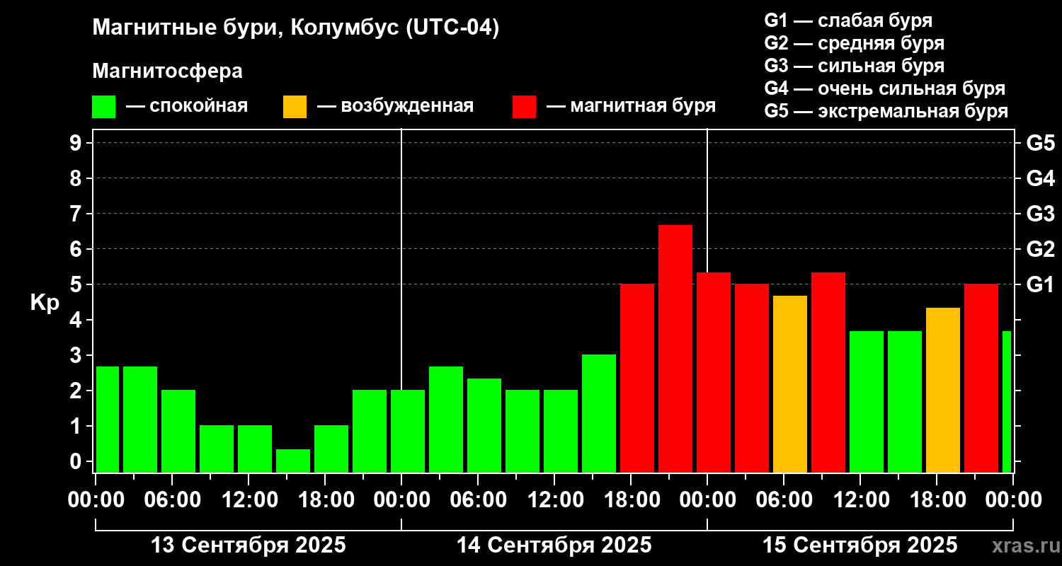Магнитные бури в Колумбусе 15 сентября 2025 года