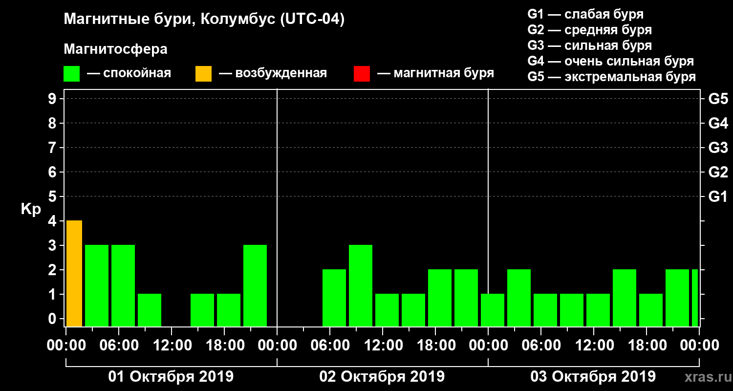 Магнитные бури в Колумбусе 3 октября 2019 года