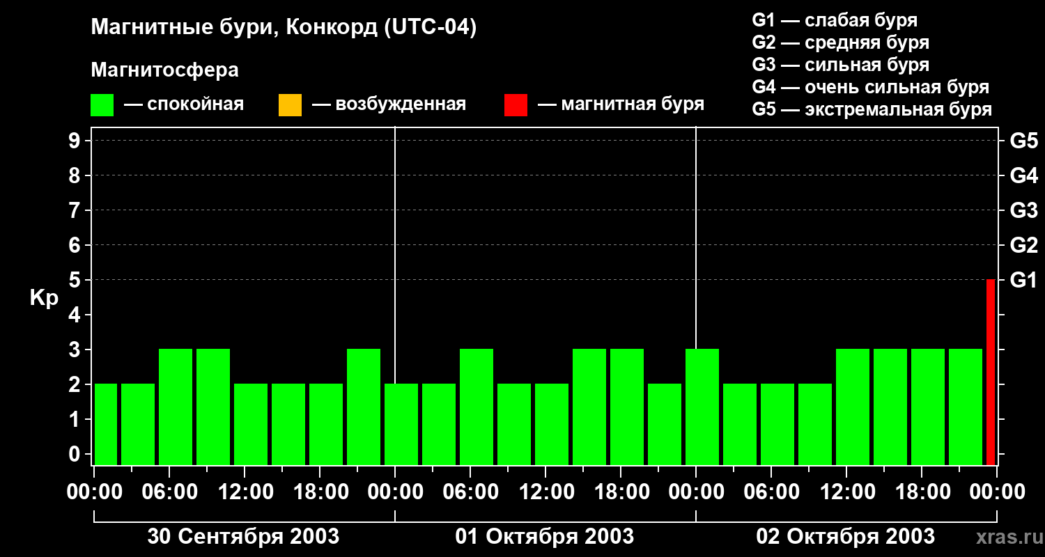 Магнитные бури в Конкорде 2 октября 2003 года