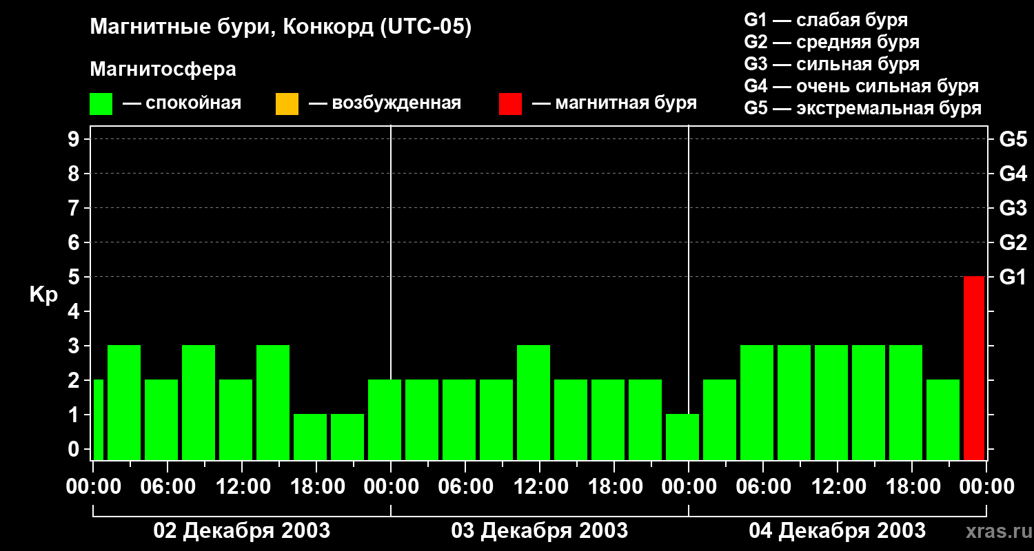 Магнитные бури в Конкорде — 4 декабря 2003 года