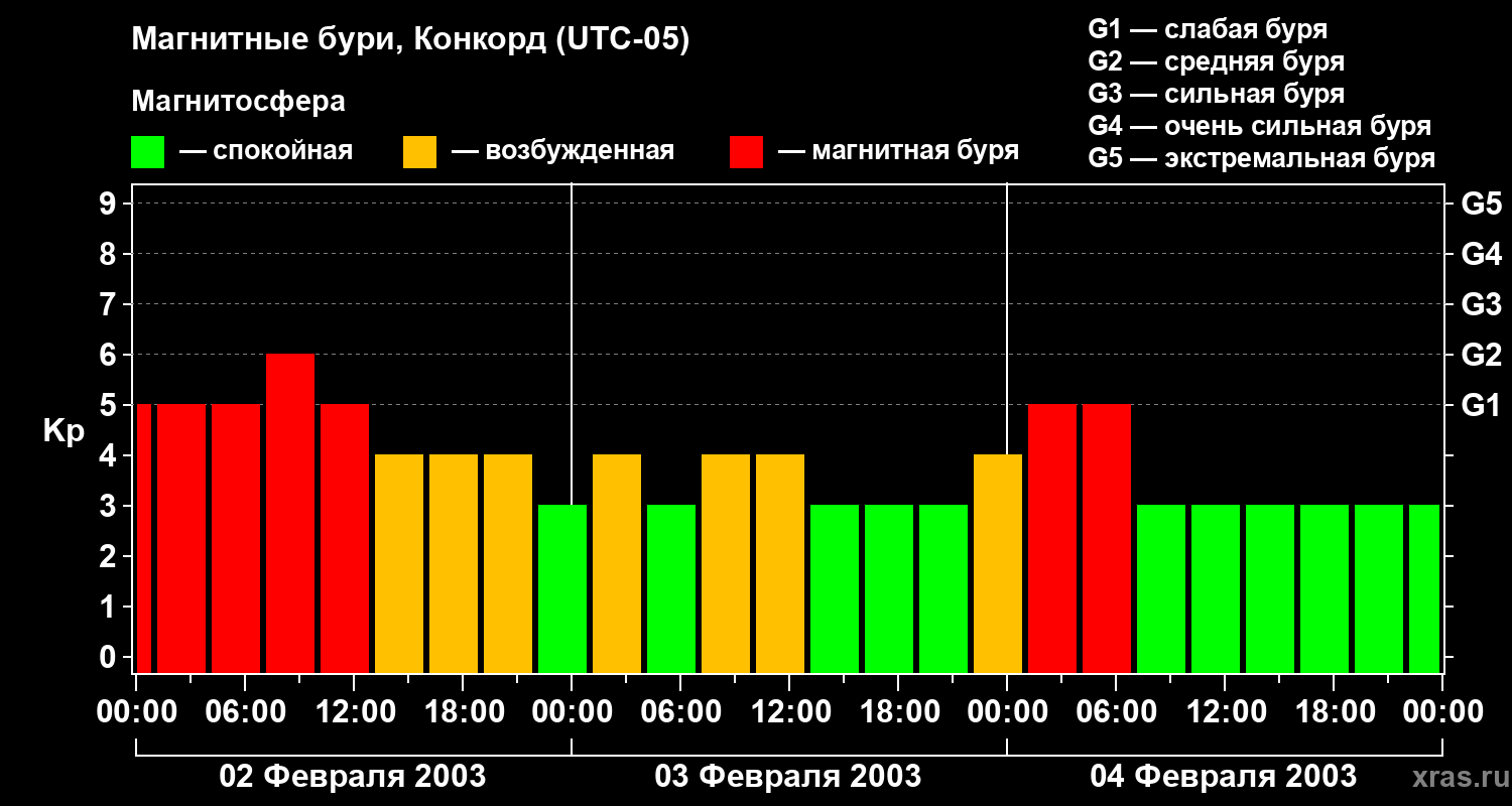 Магнитные бури в Конкорде — 4 февраля 2003 года