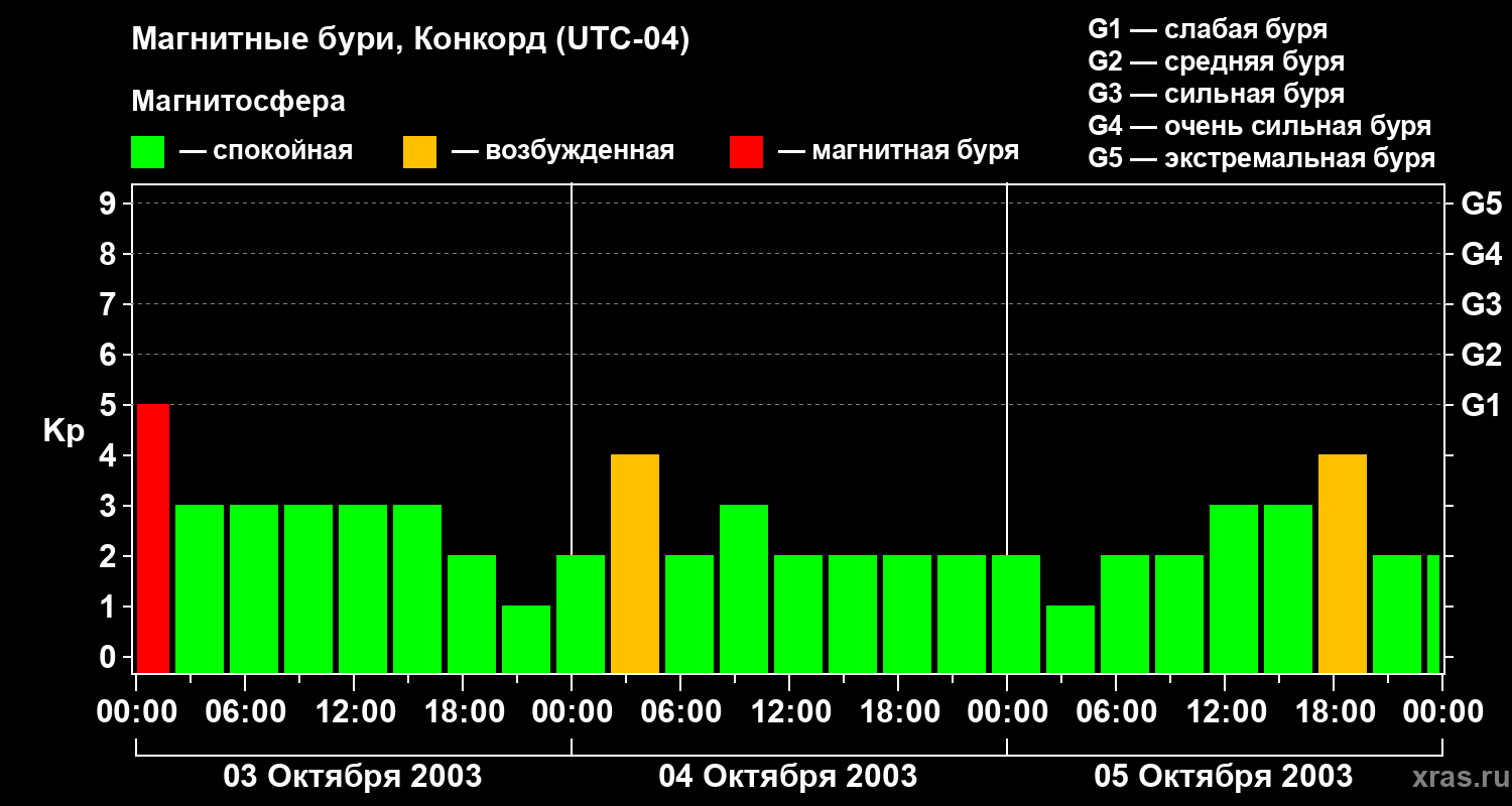 Магнитные бури в Конкорде — 5 октября 2003 года