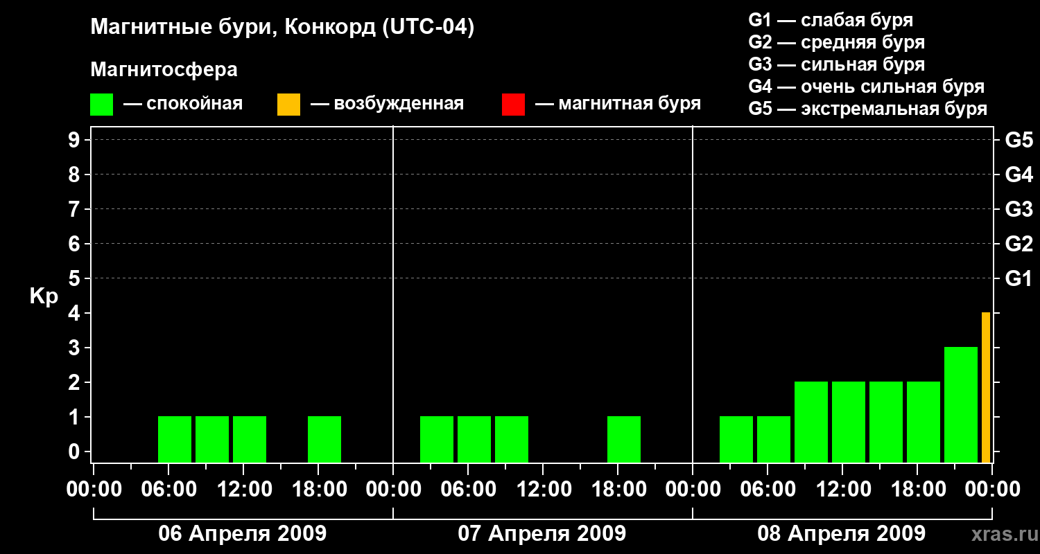 Магнитные бури в Конкорде 8 апреля 2009 года