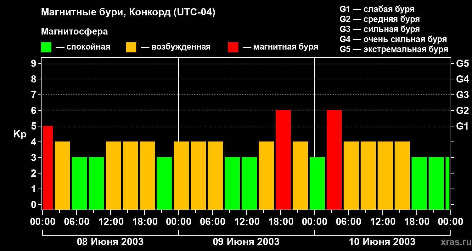 Магнитные бури в Конкорде — 10 июня 2003 года