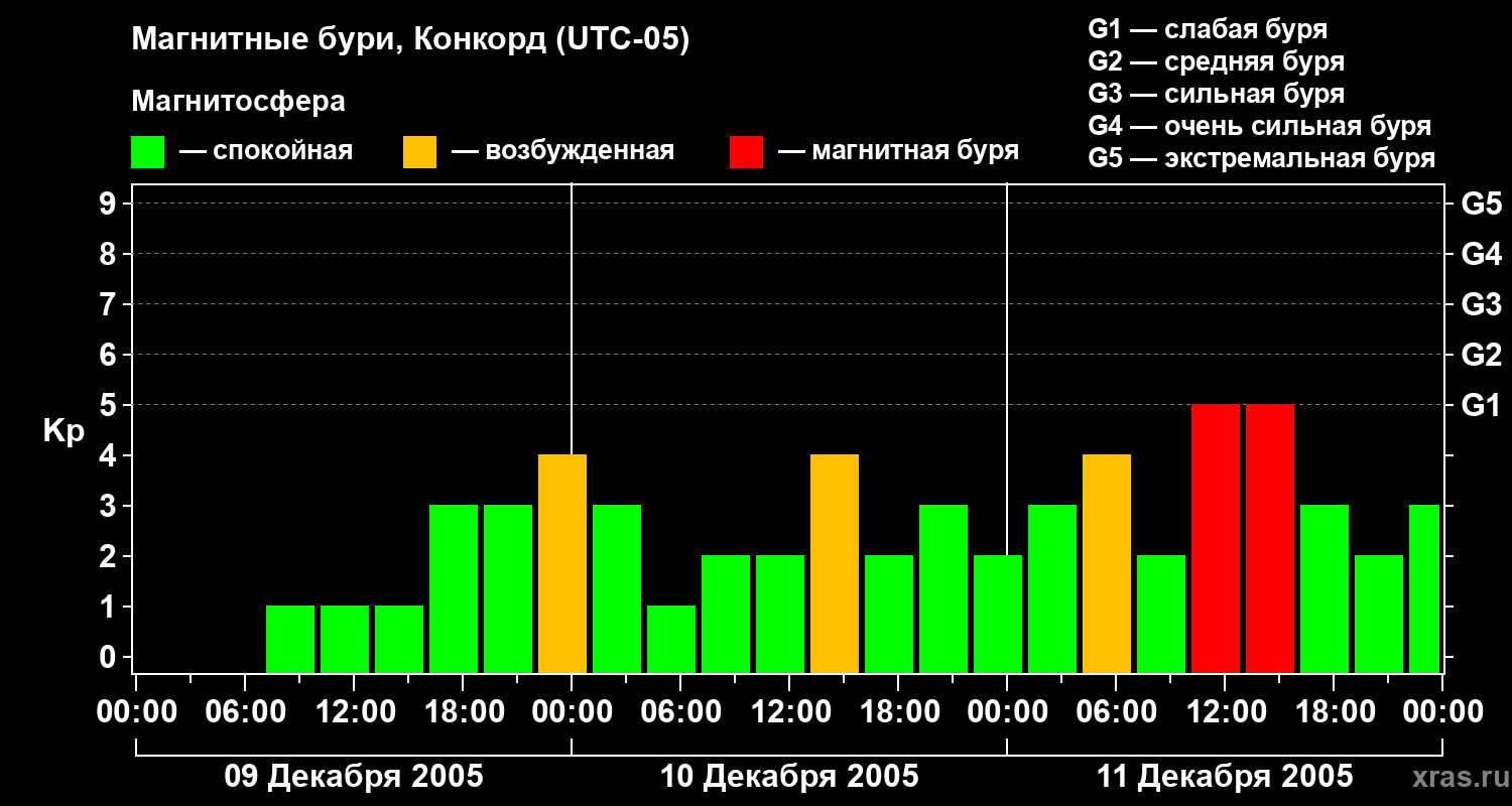 Магнитные бури в Конкорде — 11 декабря 2005 года