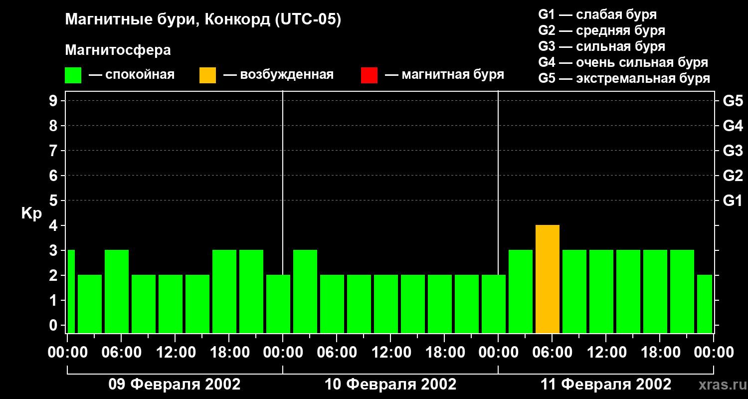 Магнитные бури в Конкорде — 11 февраля 2002 года