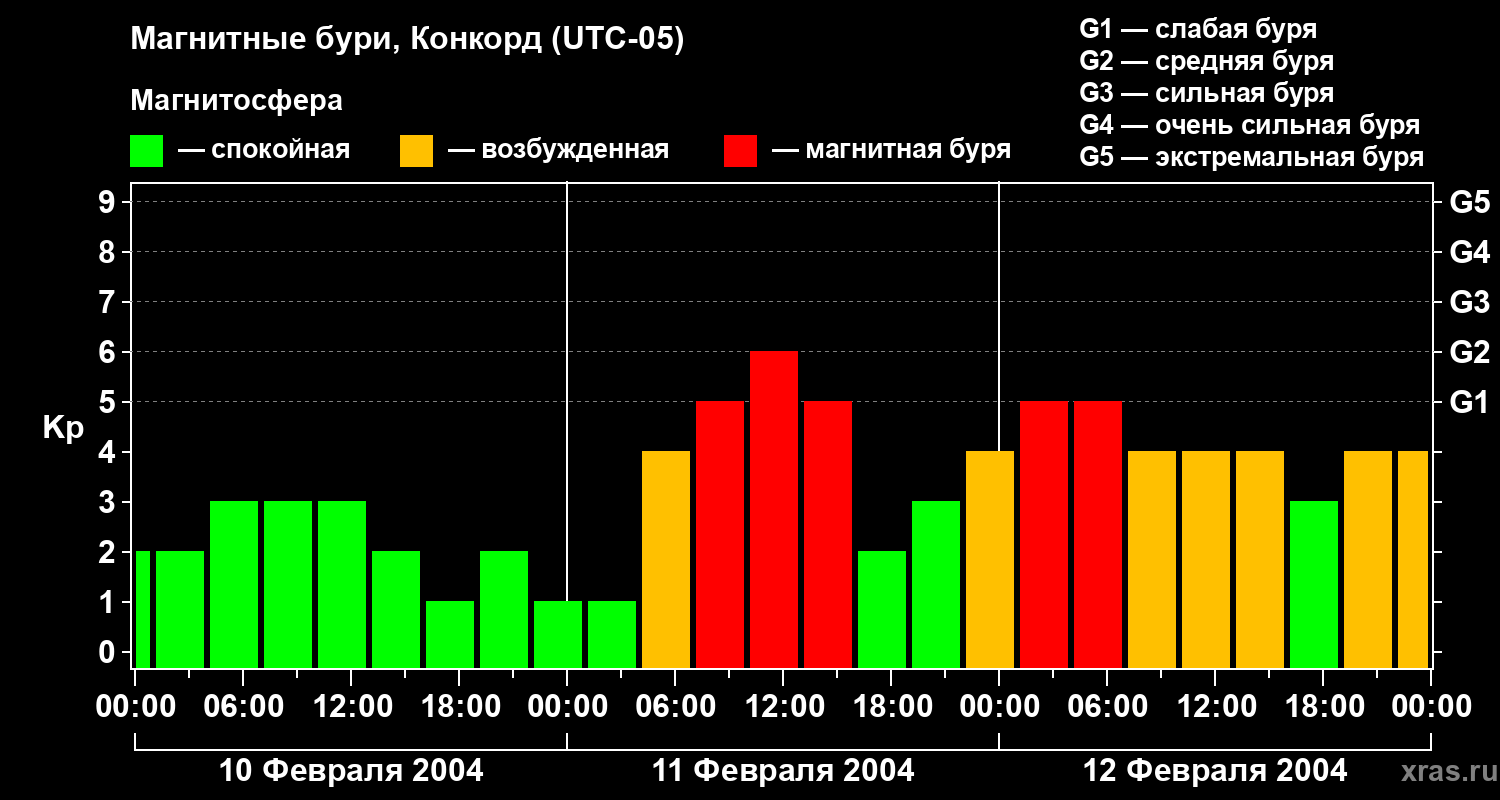 Магнитные бури в Конкорде 12 февраля 2004 года