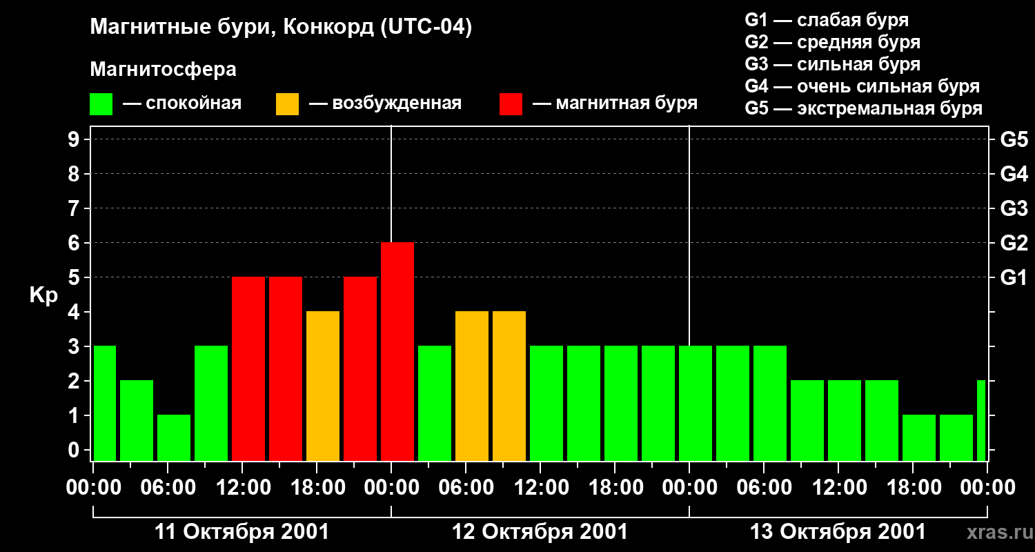 Магнитные бури в Конкорде — 13 октября 2001 года