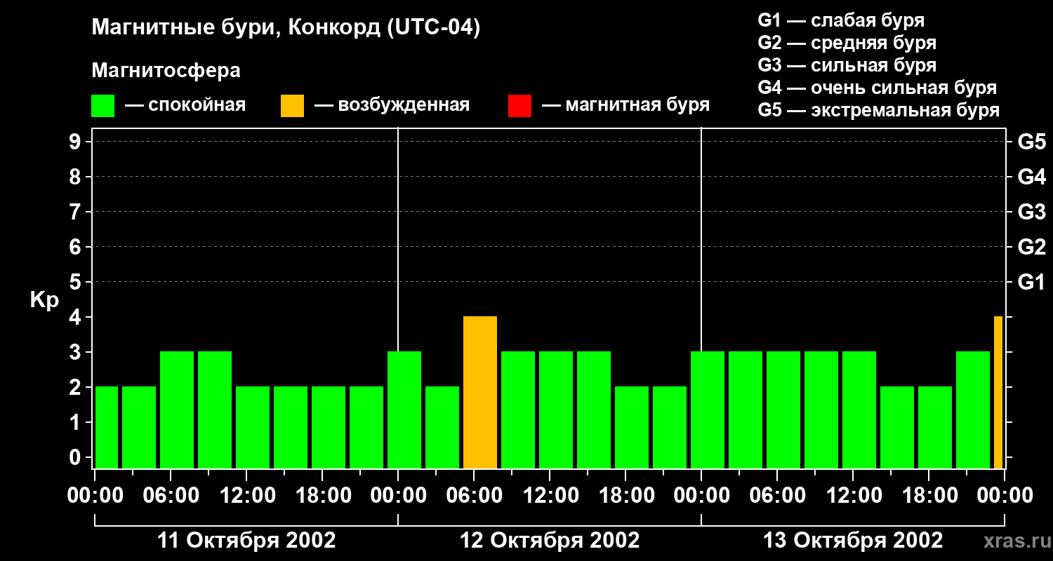 Магнитные бури в Конкорде 13 октября 2002 года
