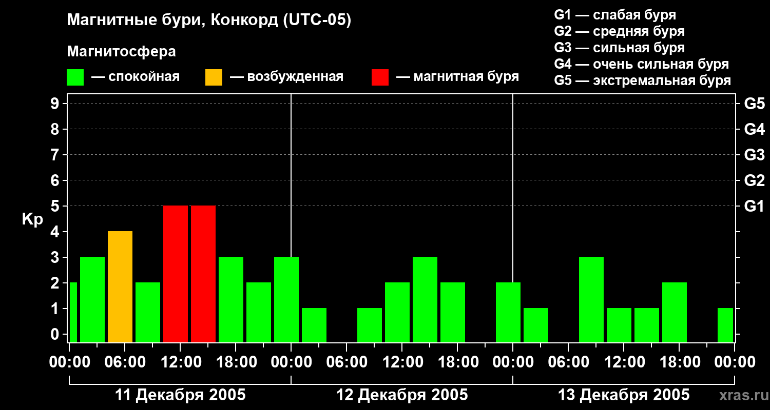 Магнитные бури в Конкорде 13 декабря 2005 года
