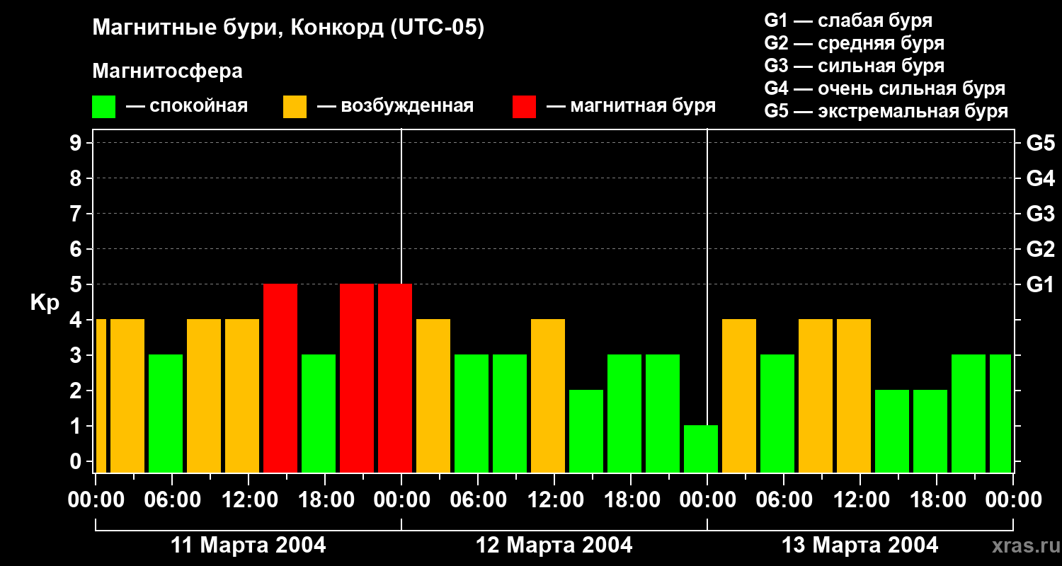 Магнитные бури в Конкорде 13 марта 2004 года