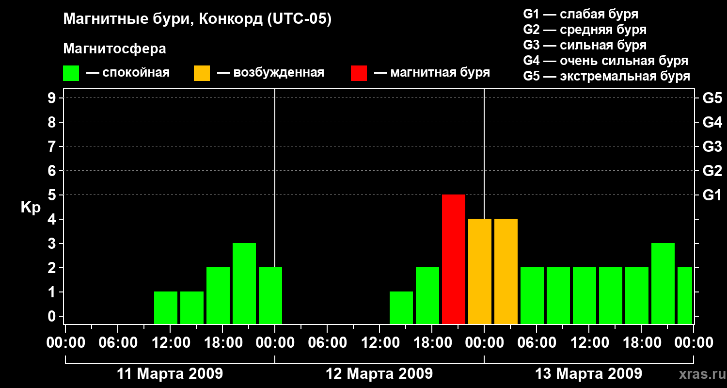 Магнитные бури в Конкорде — 13 марта 2009 года