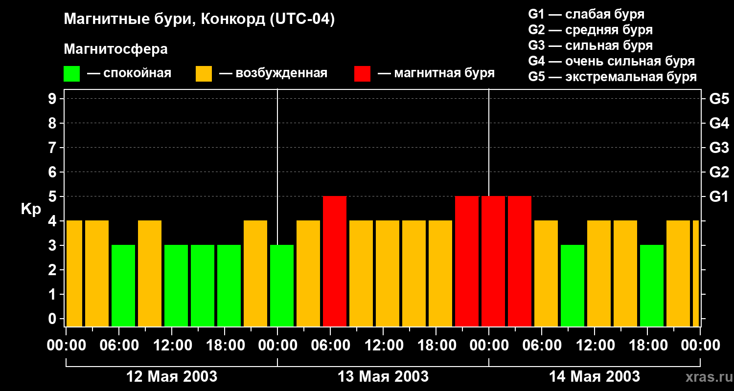 Магнитные бури в Конкорде — 14 мая 2003 года