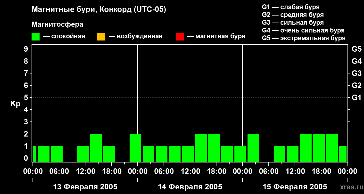 Магнитные бури в Конкорде 15 февраля 2005 года