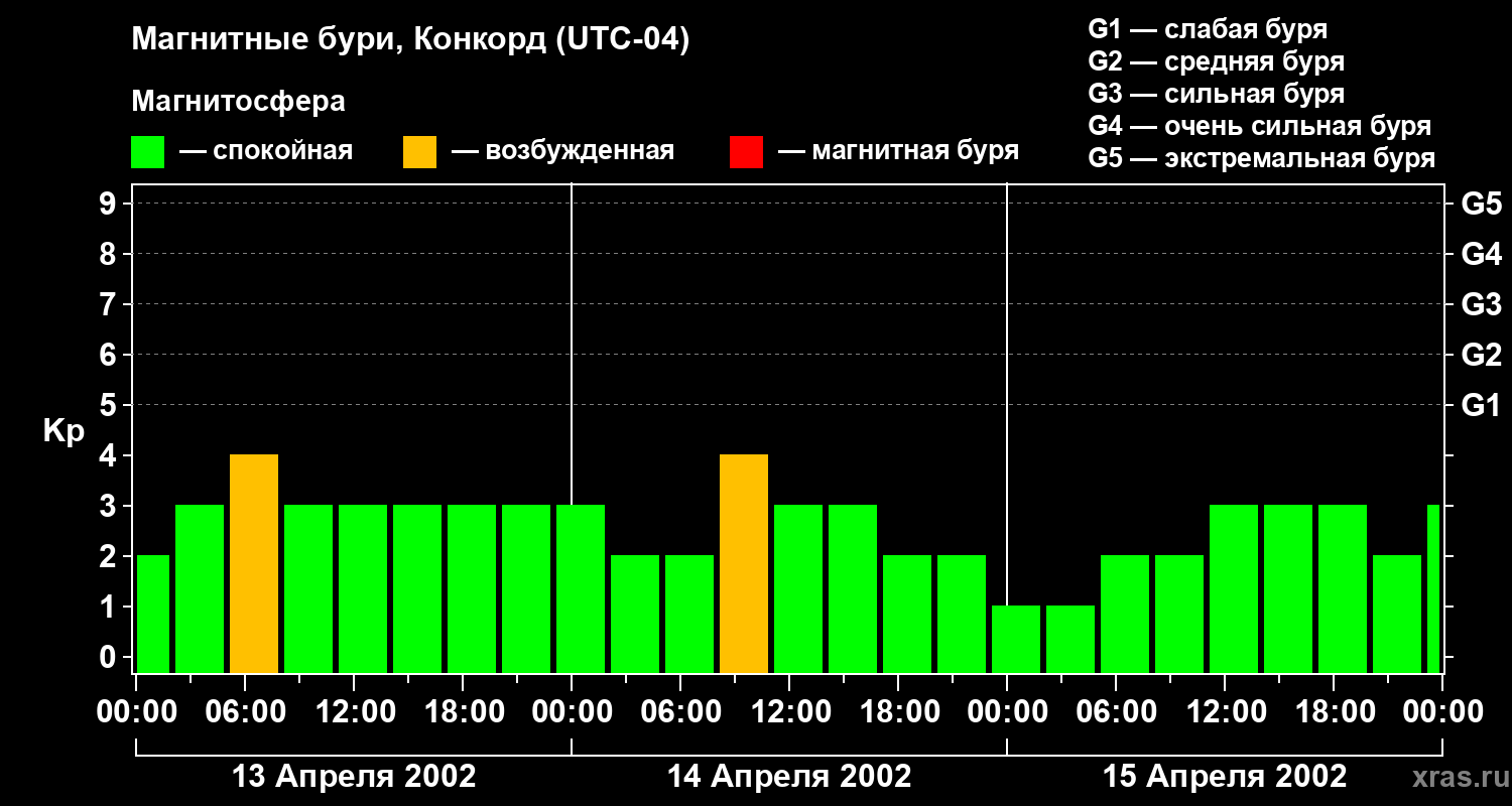 Магнитные бури в Конкорде 15 апреля 2002 года