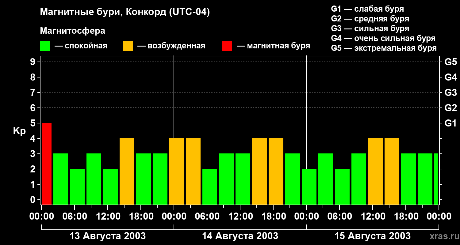 Магнитные бури в Конкорде — 15 августа 2003 года