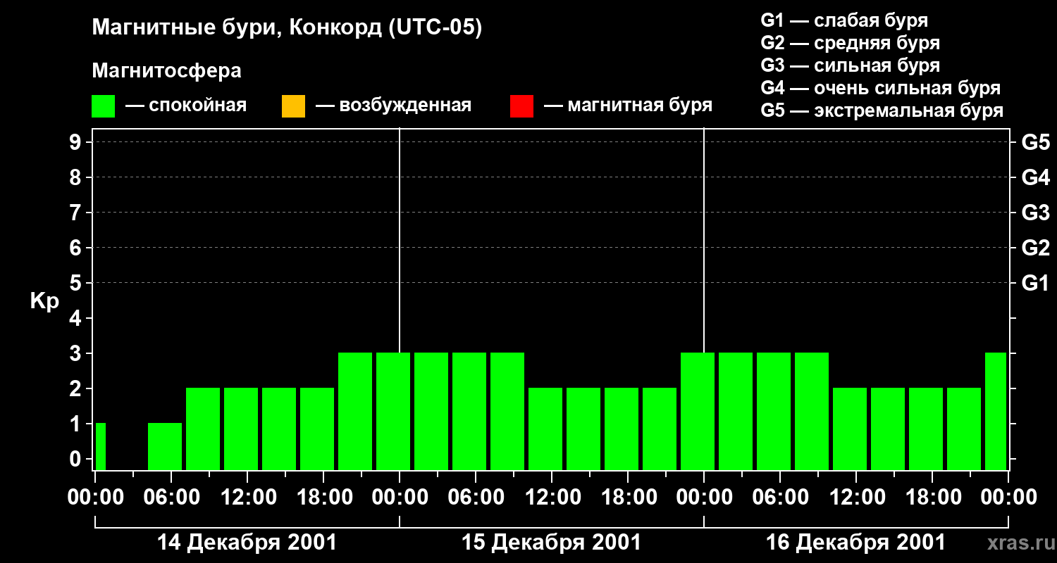 Магнитные бури в Конкорде 16 декабря 2001 года