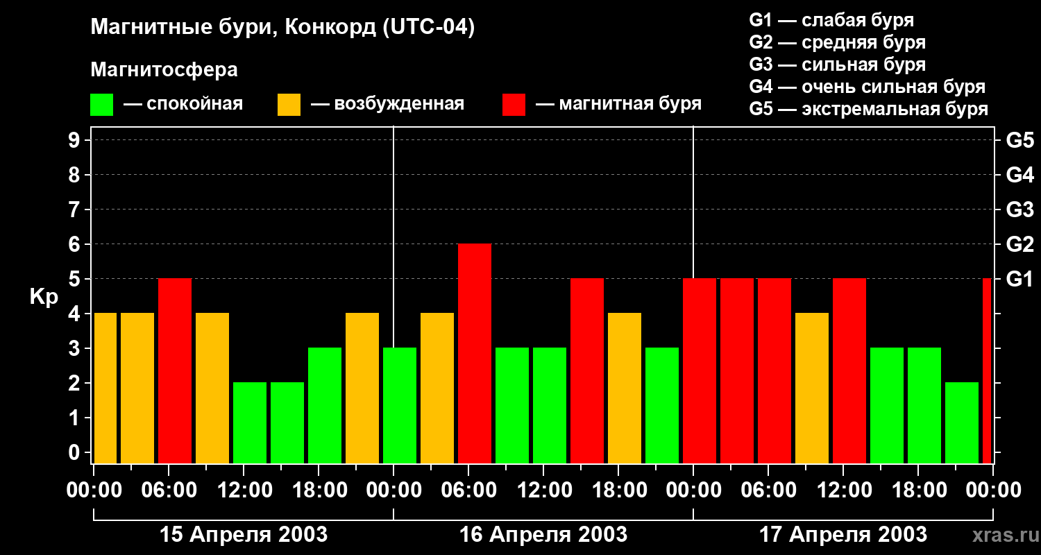 Магнитные бури в Конкорде 17 апреля 2003 года