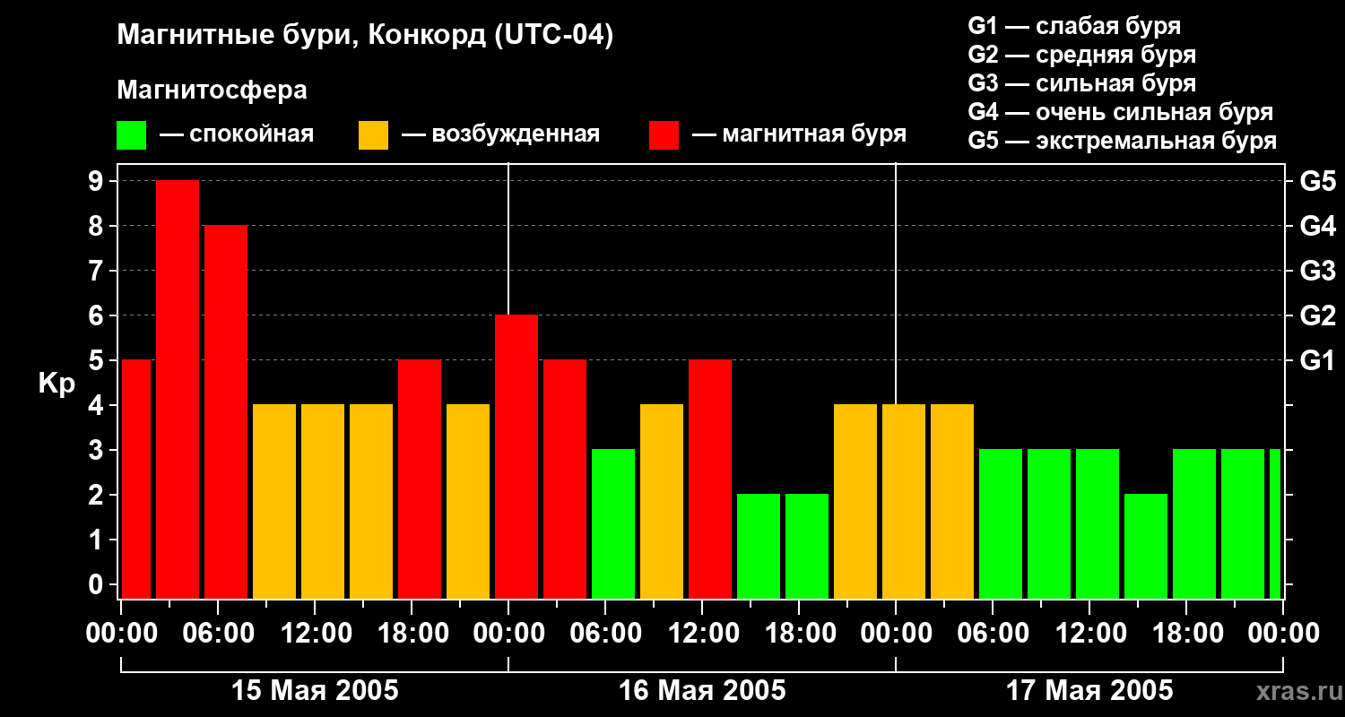 Магнитные бури в Конкорде — 17 мая 2005 года
