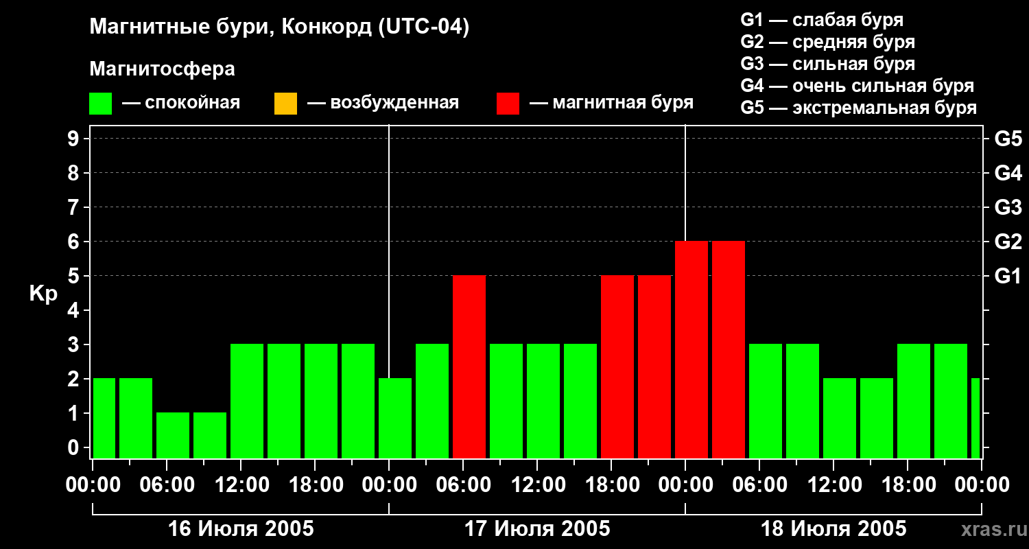 Магнитные бури в Конкорде — 18 июля 2005 года
