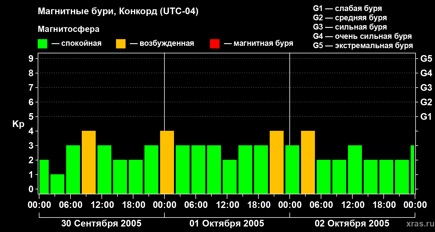 Магнитные бури в Конкорде — 2 октября 2005 года