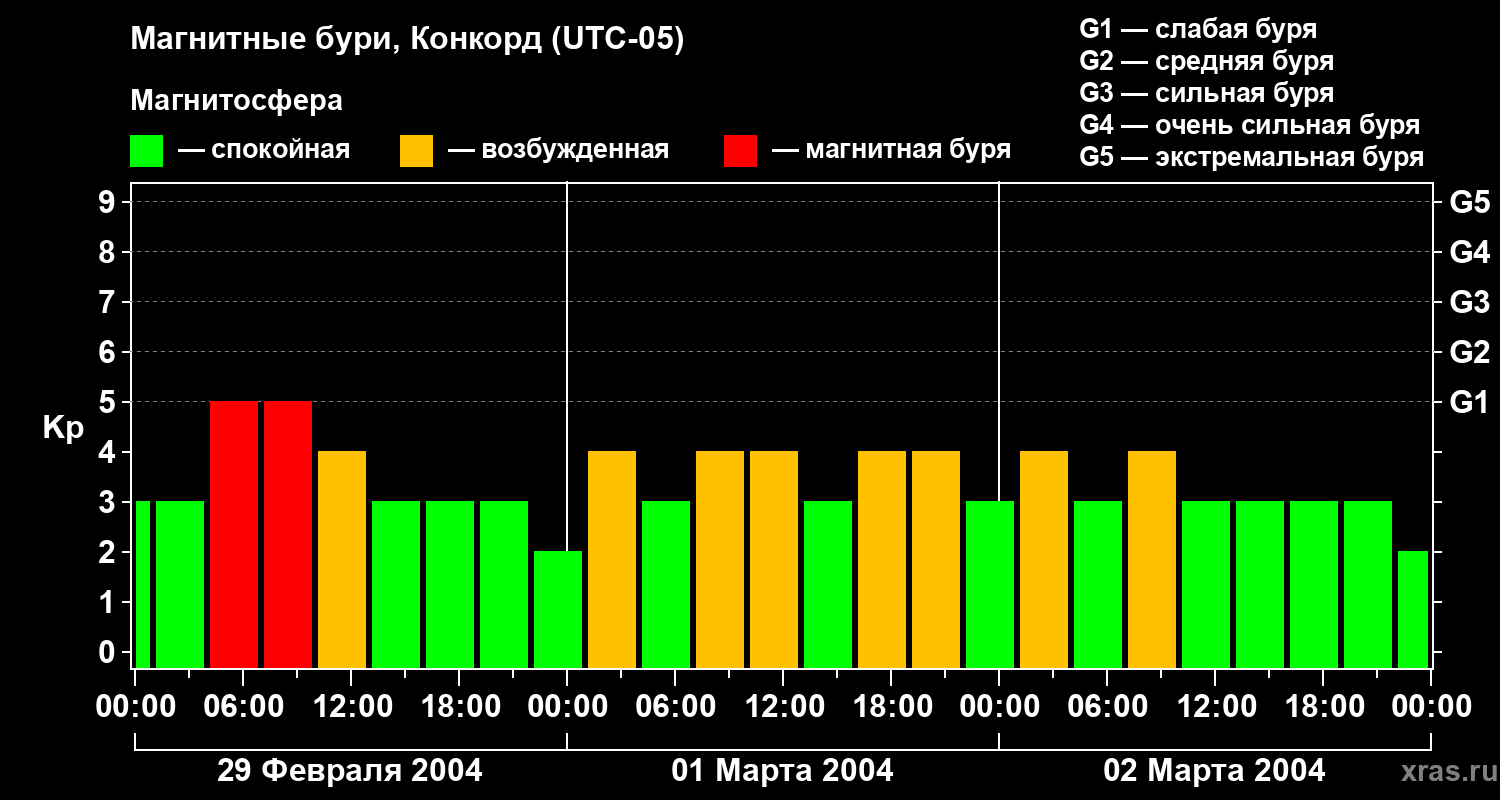 Магнитные бури в Конкорде — 2 марта 2004 года